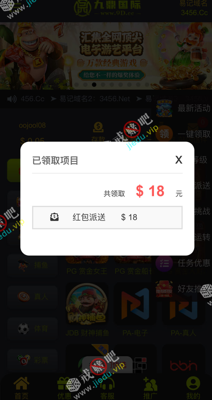 中午接到电话,登入上去彩金就弹出来了18块,漏接电话的可以去试试