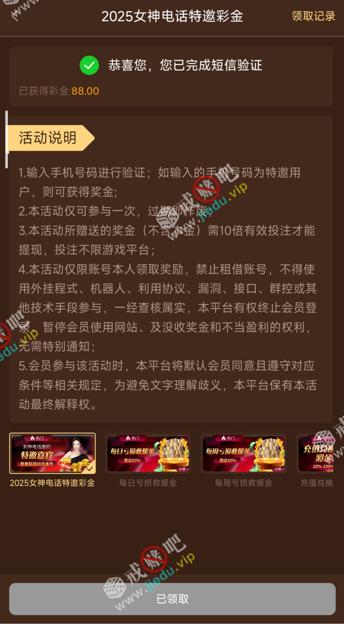 之前领过的老哥就没有机会了,没有领到的没碰到的还可以去碰,只能参与一次的,我领到了 88。