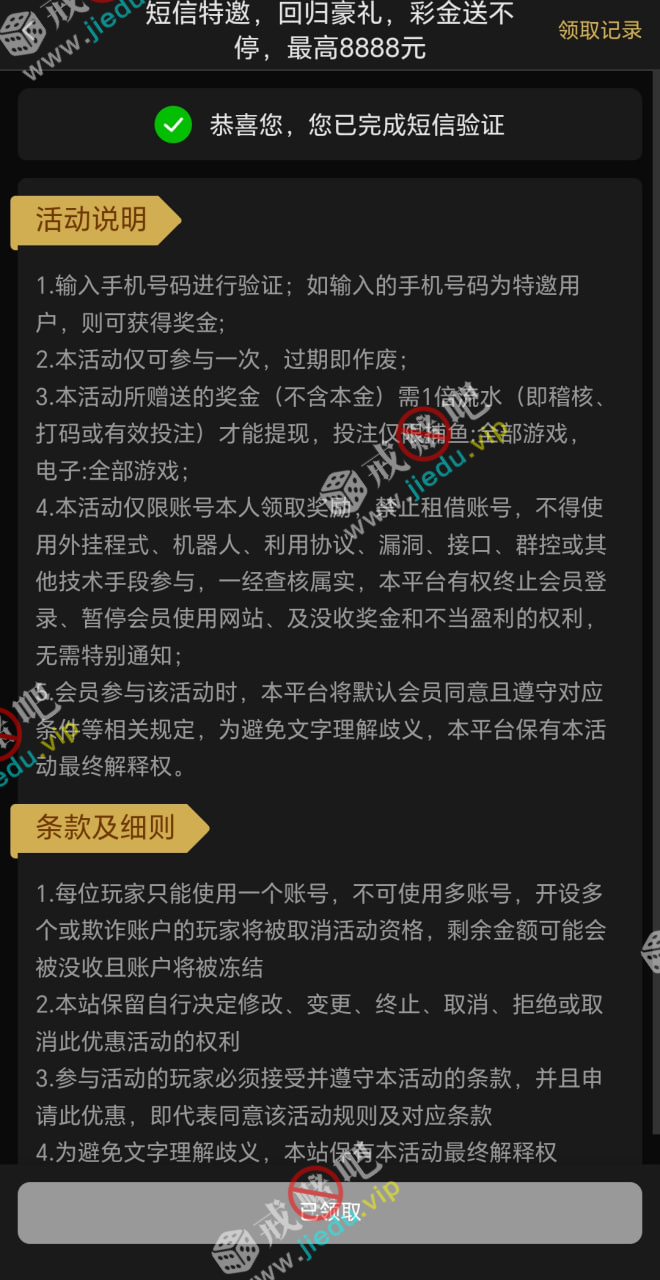 到账情况: 白嫖即可(勿充值)