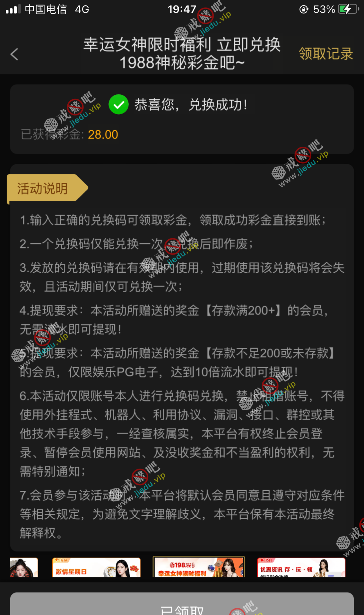 到账情况: 白嫖即可(勿充值)