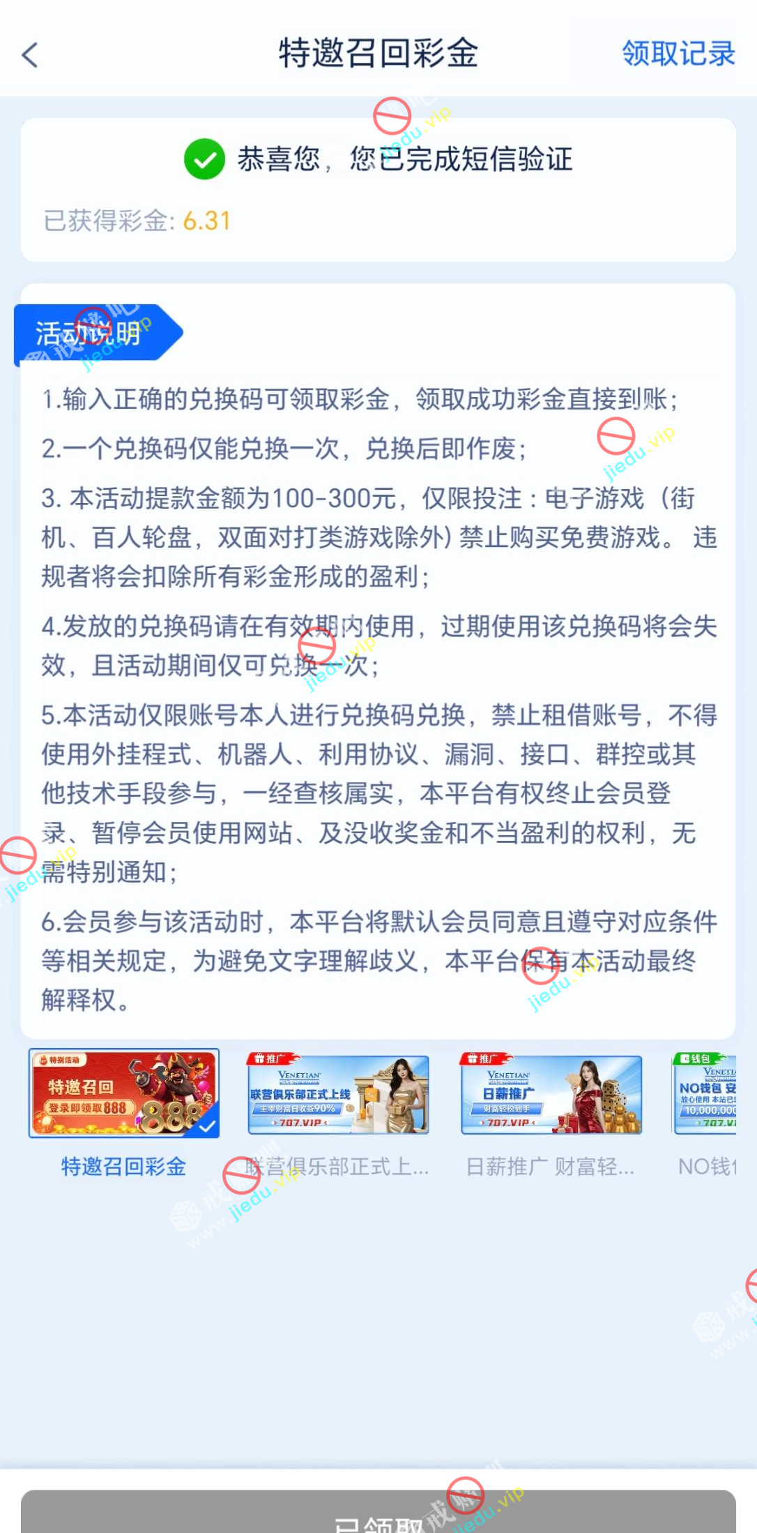 到账情况: 白嫖即可(勿充值)