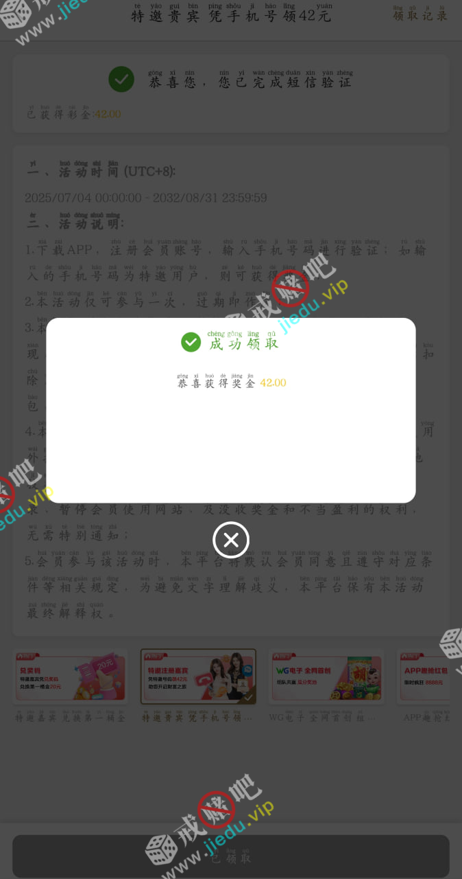 到账情况: 白嫖即可(勿充值)