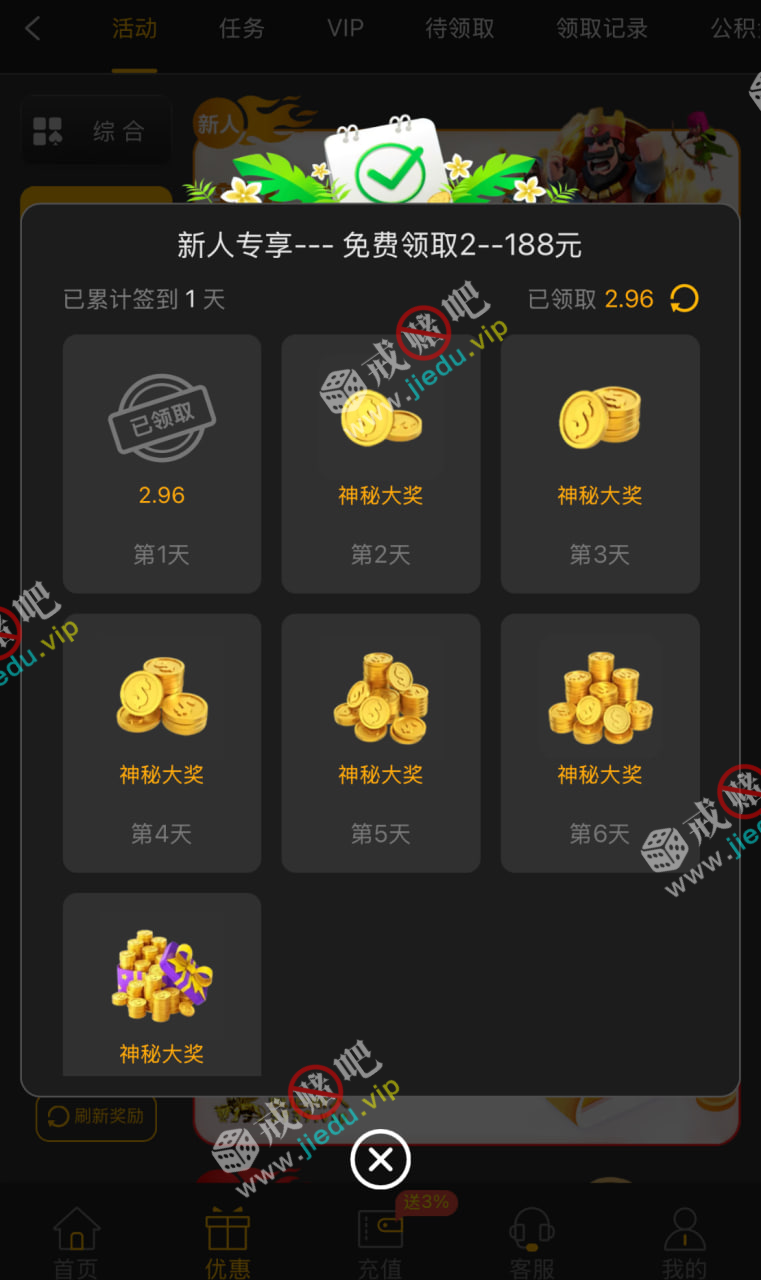 到账情况: 白嫖即可(勿充值)