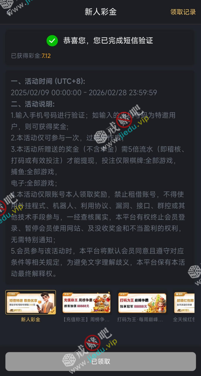 到账情况: 白嫖即可(勿充值)