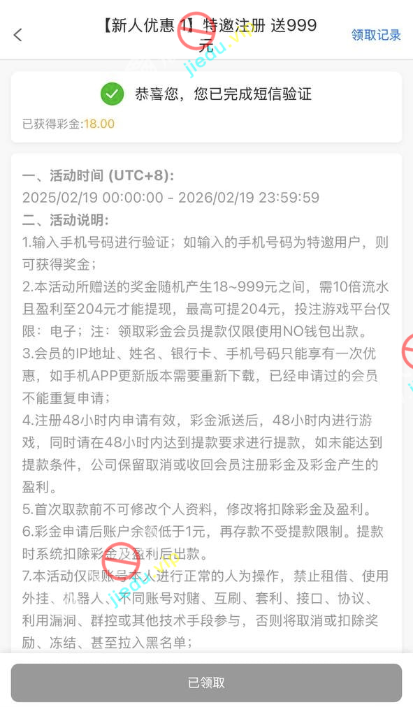 到账情况: 白嫖即可(勿充值)