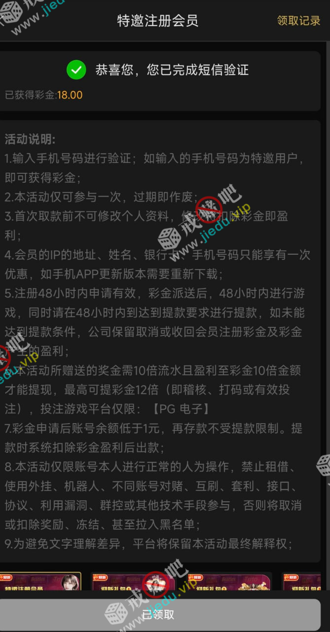 到账情况: 白嫖即可(勿充值)