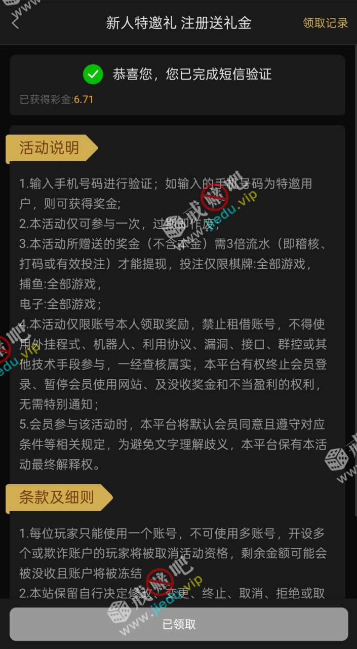 到账情况: 白嫖即可(勿充值)