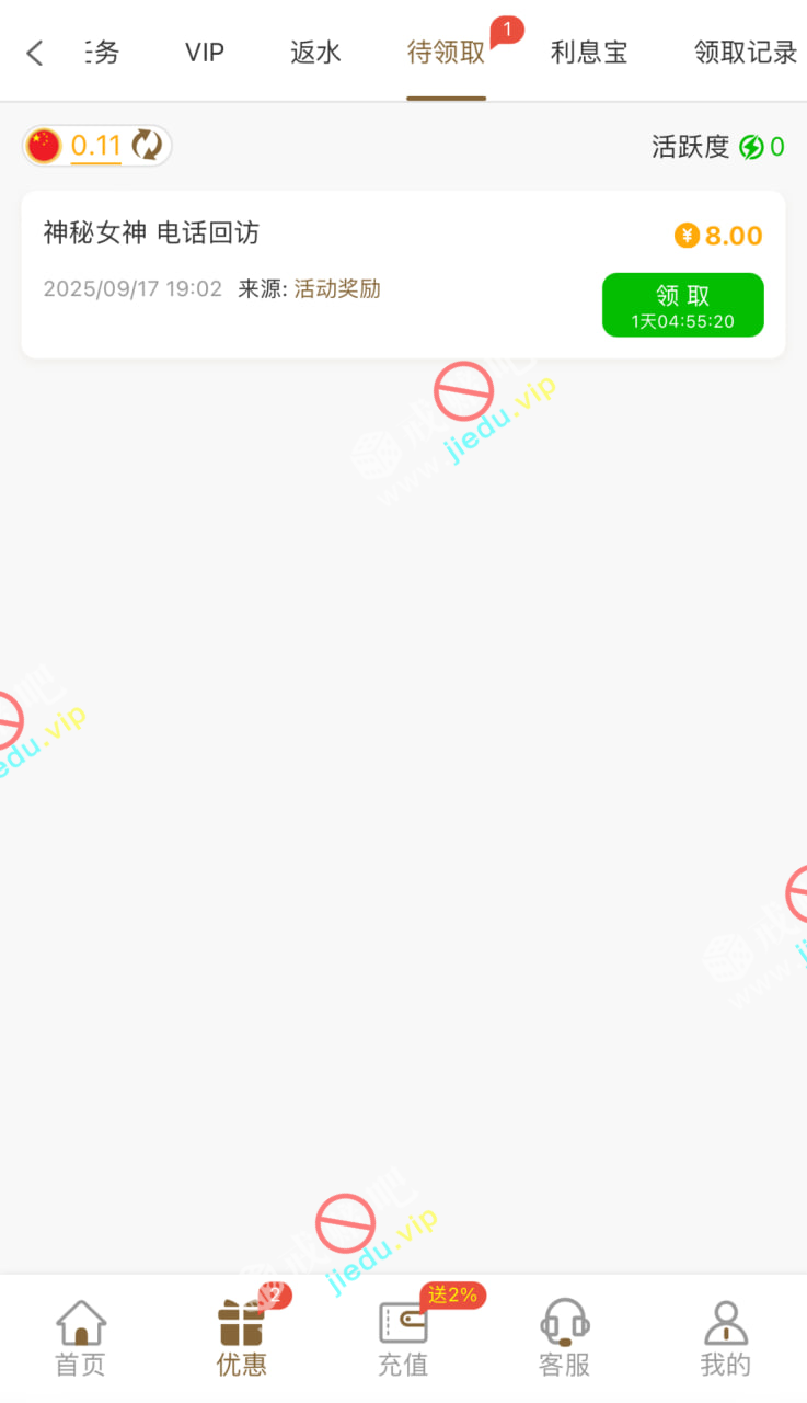 到账情况: 白嫖即可(勿充值)