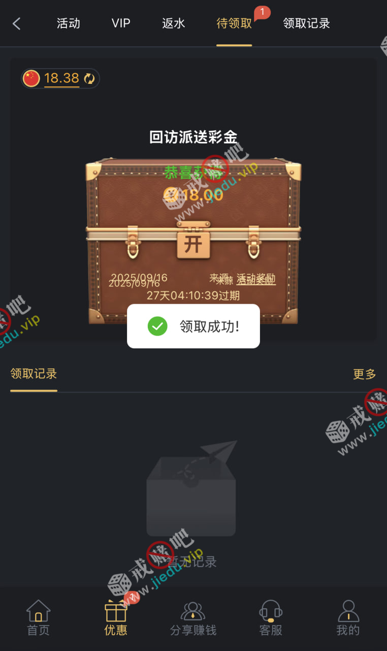 到账情况: 白嫖即可(勿充值)