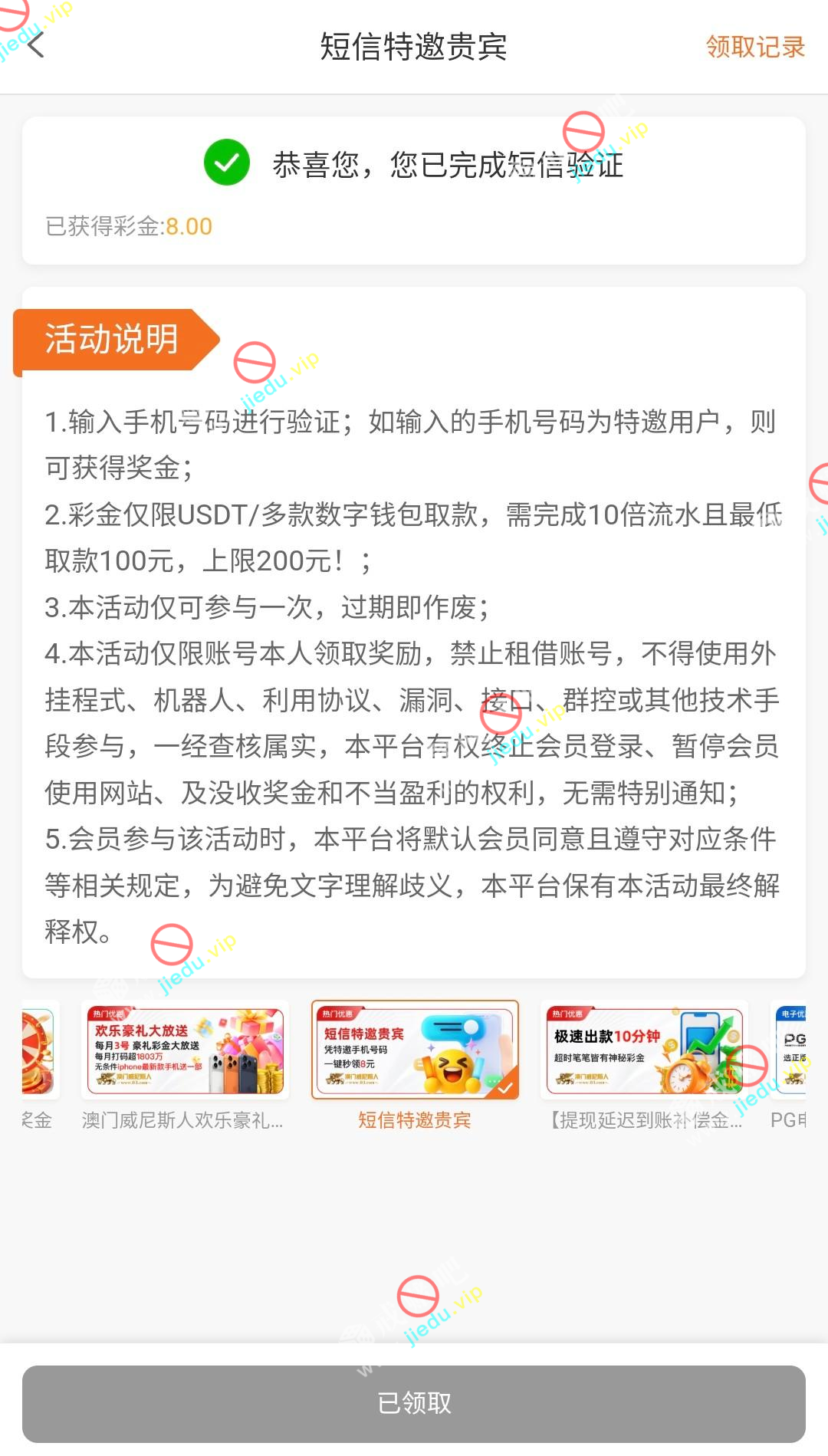 到账情况: 白嫖即可(勿充值)