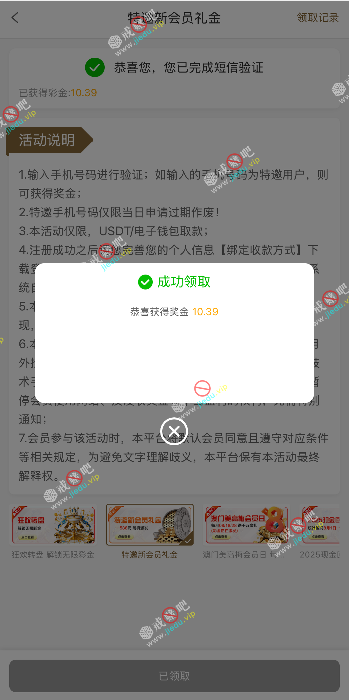 到账情况: 白嫖即可(勿充值)
